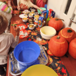 A Halloweeni-i dekor ügyes kezek munkája, amely mindenki tetszését elnyerte. A fejlesztő tevékenységek állomásokra bontva várták a Liget csoportjait. Az első állomás a tökök kiválasztása és faragása volt. Egyedi, különböző töklámpások születtek.