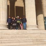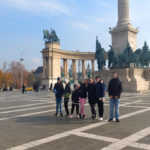 A kiállítás után sétát tettünk a Hősök tere monumentális terén. Megcsodáltuk a Millenniumi emlékmű szobrait, és beszélgettünk arról, kiket ábrázolnak. A hatalmas tér és a szobrok mérete mindenkit lenyűgözött, néhányan fényképeket is készítettek a szobrok előtt.