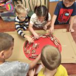 Október hónapban az őszi gyümölcsökkel, termésekkel foglalkoztunk. Eladtunk, vásároltunk a Liget-piacon, majd a művészeti napunkon Szutyejev: Az alma című meséjét játszottuk el jó néhány alkalommal a gyerekek örömére. Nagyon tehetségesen alakították a különböző szerepeket. Kézműves foglalkozáson különböző technikával készítettünk őszi terményeket, és még a fonálragasztással is megbirkóztunk.