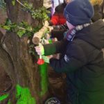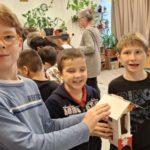 A téli időszakban a múlt tanévben megszerzett ismereteinket felelevenítve a téli madárgondozással foglalkoztunk. Újrahasznosítható alapanyagokból madáretetőket készítettünk. Terveink szerint a Bókay kertben szerettük volna elhelyezni őket, de be kellett látnunk, nem tudunk olyan gyakorisággal ellátogatni a kertbe, hogy az etetők ellenőrzése, feltöltése megfelelő legyen. Így az iskolai sétány fáira tettük az “éléskamrákat”. Remélhetőleg a környezetünkben élő madarak örömére.