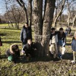 Mégis eljutottunk a Bókay kertbe! Most még elég szomorú képet festett a tél, de választottunk osztályonként egy fát. Megjelöltük. Rügyfakadáskor újra felkeressük őket.